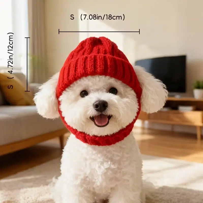 Warm knitted dog hat for small breeds with ear openings and a secure pullover fit—great for boutiques, groomers, and eCommerce. Factory-direct OEM/ODM with custom colors/sizes/logo, mixed orders, and quick sampling.