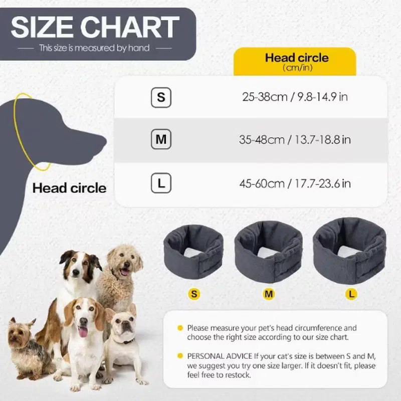 Bulk OEM dog calming hood with ear muffs reduces thunder, fireworks & grooming stress. Soft, adjustable, breathable. Perfect for wholesalers, custom branding & post-surgery recovery.