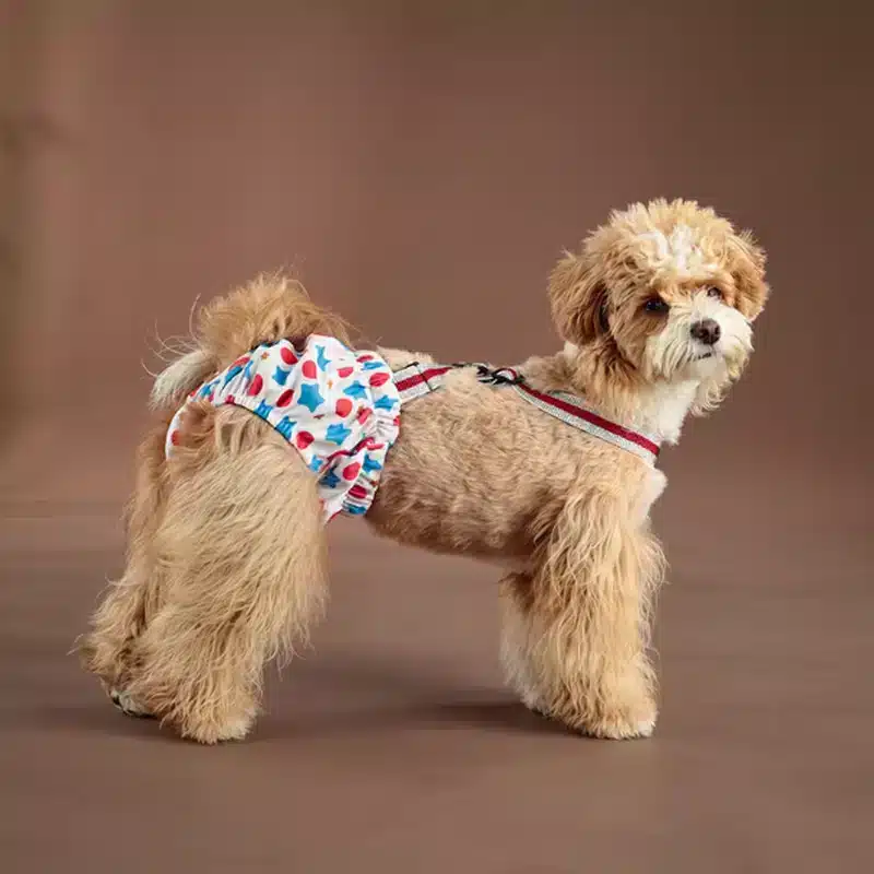 Premium reusable dog diapers with suspenders for small & medium breeds. Super soft, fully leakproof, washable 100+ times. Perfect for wholesalers, private label & OEM factories – MOQ 100pcs with custom prints and packaging available.