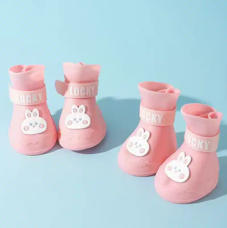 Wholesale cute dog rain boots with durable design, ideal for rain, snow, or hot pavement. Customize colors (yellow, pink, blue) & logos at our factory. Perfect for B2B, OEM production, low MOQ. Sizes S-XL available.