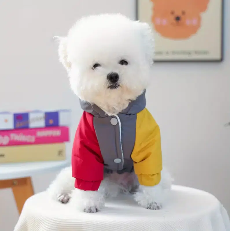 A warm, windproof colorblock puffer for small dogs, built for outdoor retail lines. OEM-friendly for custom colors and private label winter collections.