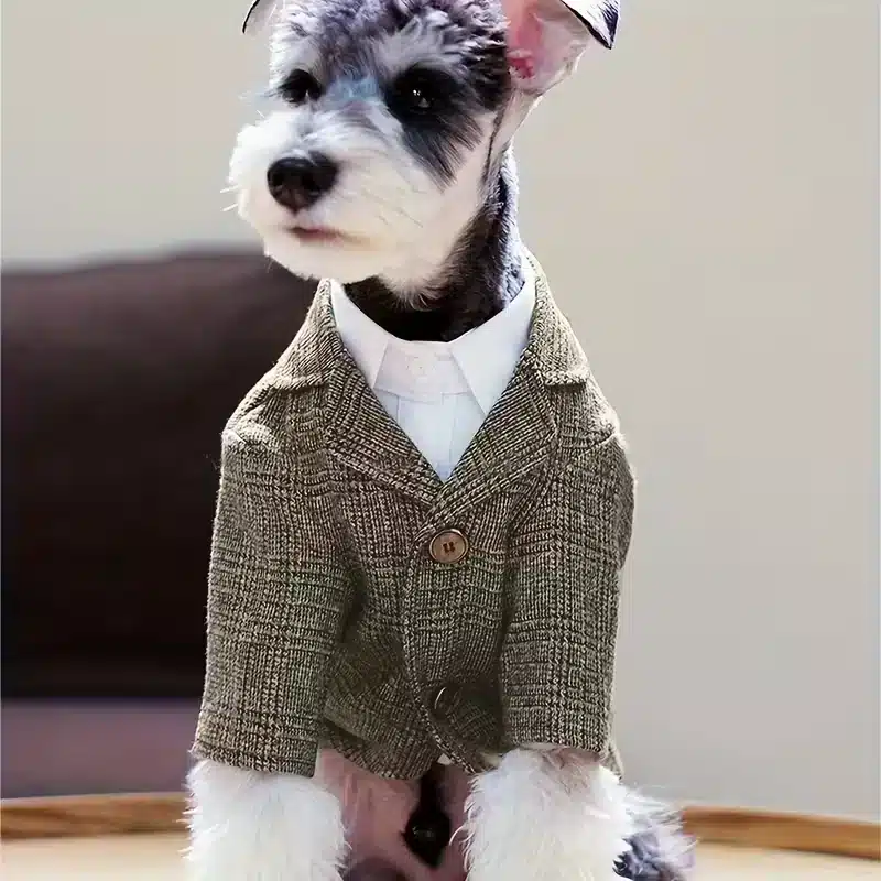 A tailored plaid dog suit jacket designed for weddings, photoshoots, and holiday events. Ideal for retailers and custom brands. Factory MOQ, label customization, and OEM service available.