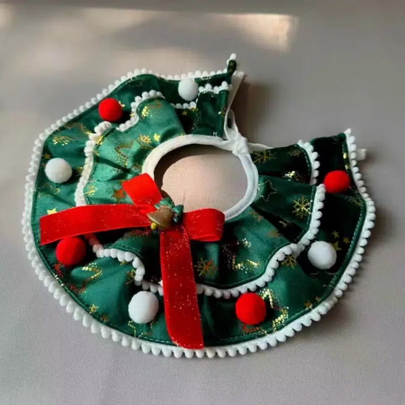 OEM red-green Christmas pet collars with adjustable straps & bells. Durable satin for year-round use on all breed sizes. Perfect for bulk wholesale, private label orders – factory direct.
