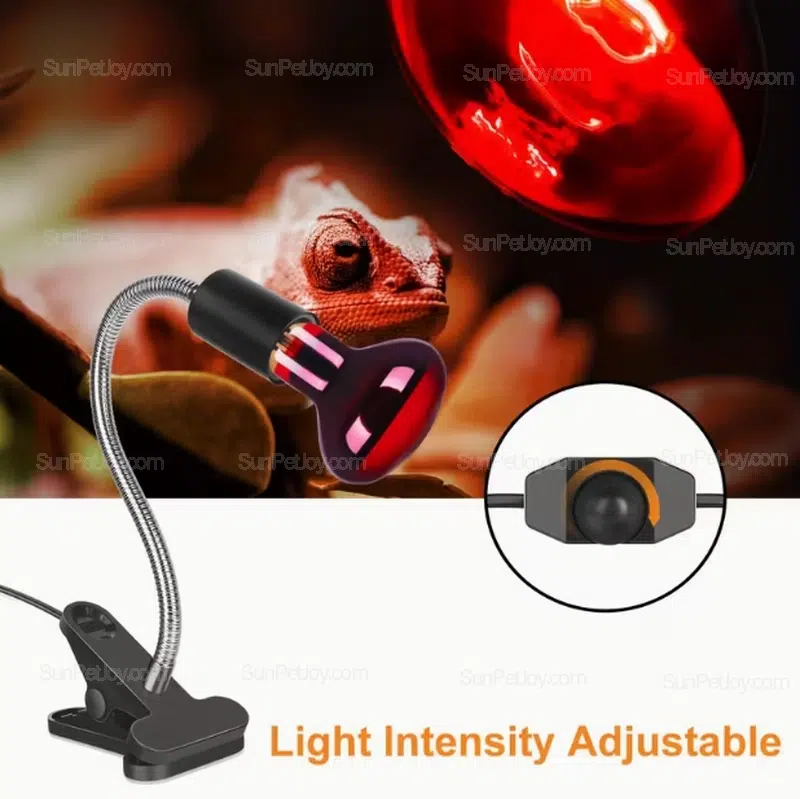 Designed for lizard habitats, this dimmable basking heat lamp offers precise heat control with a flexible clamp, supporting OEM specs for factory and bulk supply.
