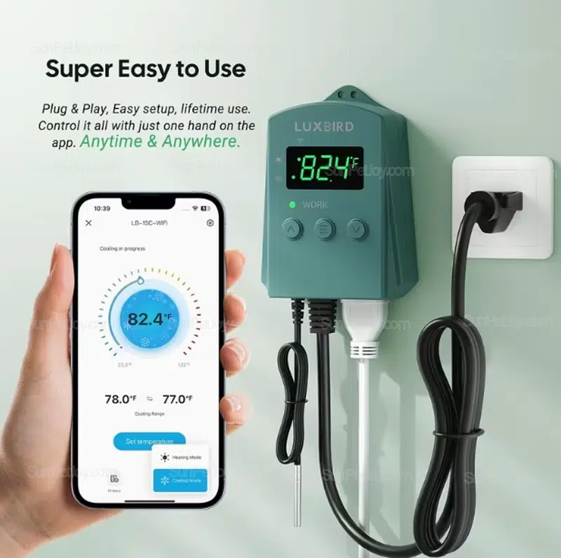 WiFi-enabled temperature controller engineered for snake enclosures, supporting stable heating and cooling control with alarm safety, ideal for OEM customization and bulk deployment.