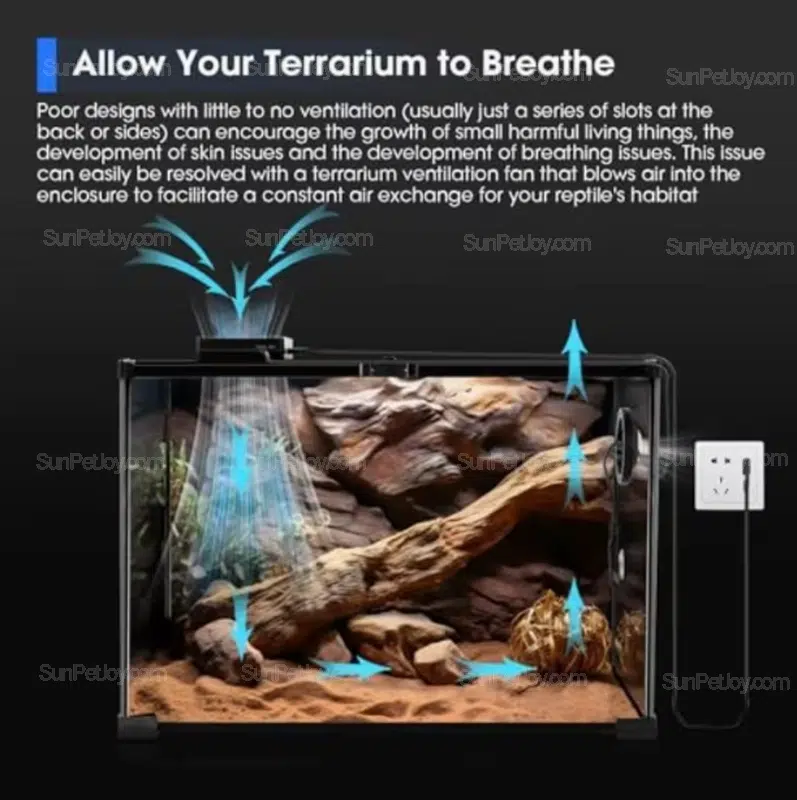 Designed for reptile enclosures requiring stable airflow, this thermo-hygrometer integrates auto ventilation and supports OEM customization for factory and bulk supply.