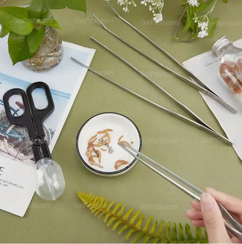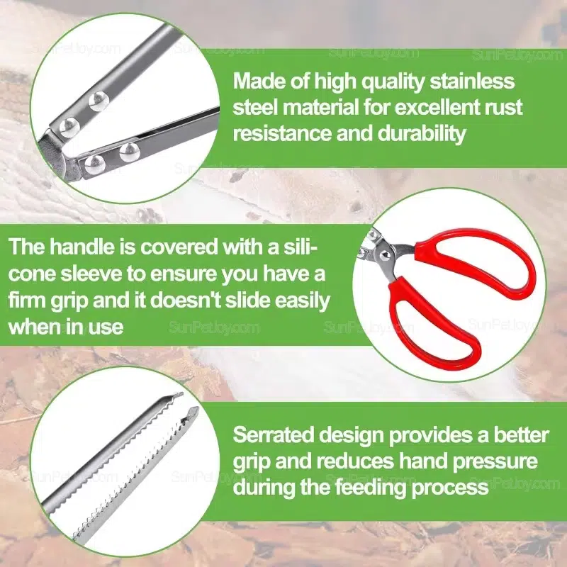 Designed for snake feeding and enclosure care, this stainless steel tongs set supports bulk orders and factory customization for professional vivarium suppliers and brands.