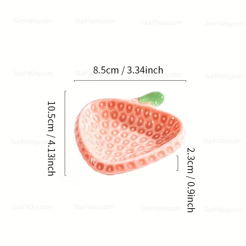Strawberry-shaped ceramic feeding bowl for small animals, ideal for retail brands and bulk supply. Factory-made with custom colors, glazing and packaging options.
