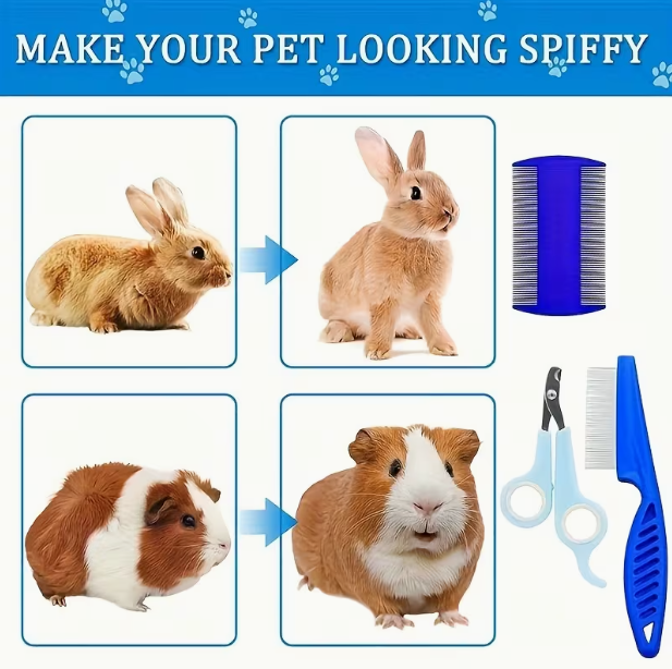Reliable 4-piece grooming kit built for small animals: safe round-tip clippers, gentle silicone brush, fine comb. Perfect for factories seeking consistent OEM quality and custom branding options.