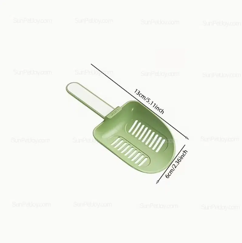Cute plastic cat litter scoop, specially designed for small animals such as hamsters. Quickly sifts out urine clumps without wasting litter, and features a convenient hanging hook for storage. Suitable for daily cleaning in pet shops and breeding farms. B2B wholesale and factory OEM customization are available.