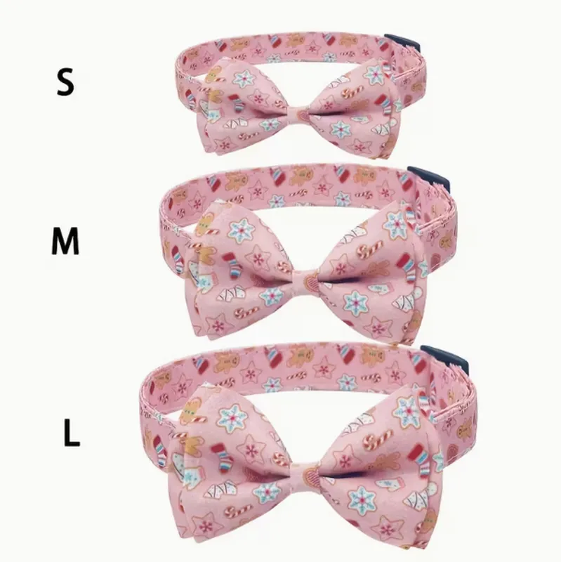 Premium wholesale pink Christmas dog bow tie collars. Adjustable for S/M/L dogs. OEM available for bulk orders. Perfect for festive pet apparel lines