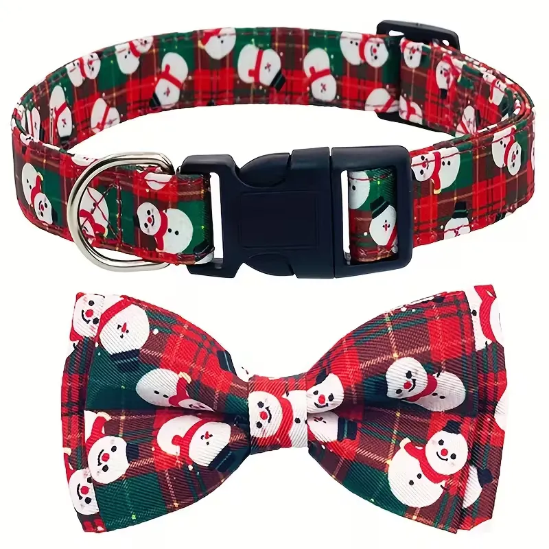 Ideal for B2B factories: OEM custom dog bow ties wholesale in festive Christmas patterns. Breathable polyester, quick-release buckle, detachable bow for holiday pet photos & events. Machine washable.