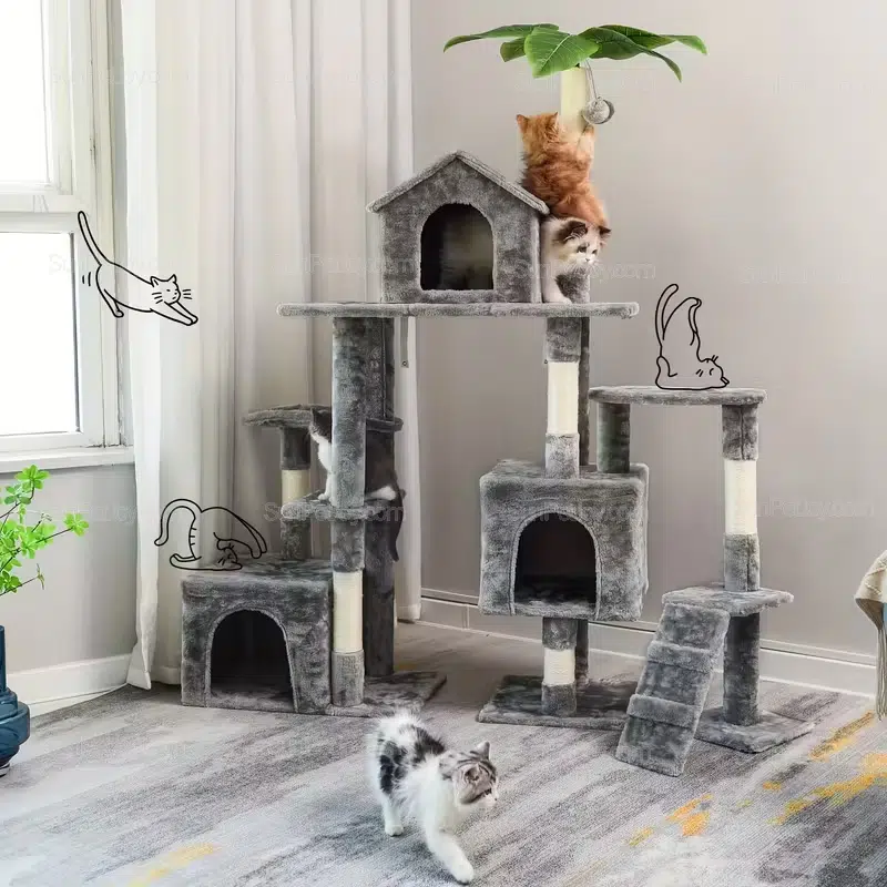 Wholesale durable multi-level cat scratching tree: ideal for bulk orders, OEM customization. Perfect for pet stores, multi-cat homes. Sturdy sisal posts, cozy perches.