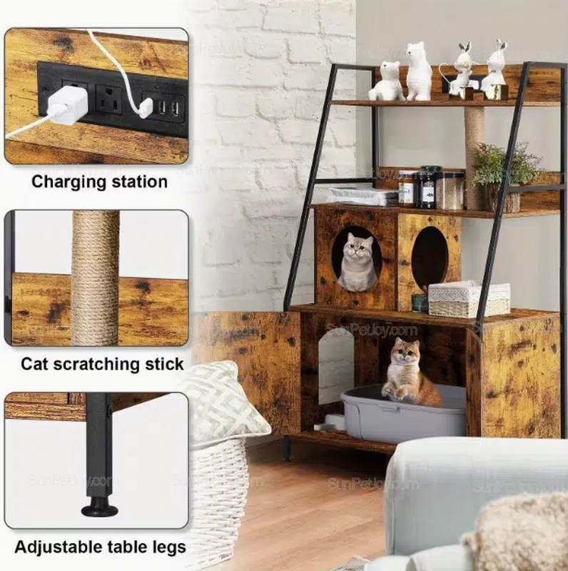 Discover the wholesale rustic cat litter box with hidden charging station, designed for B2B buyers. Customizable with storage options, perfect for bulk orders.