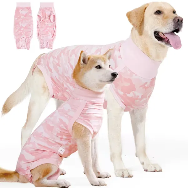 Durable 2-pack dog recovery suits for male & female pets, breathable, ideal for post-surgery, custom OEM/wholesale options for factories.