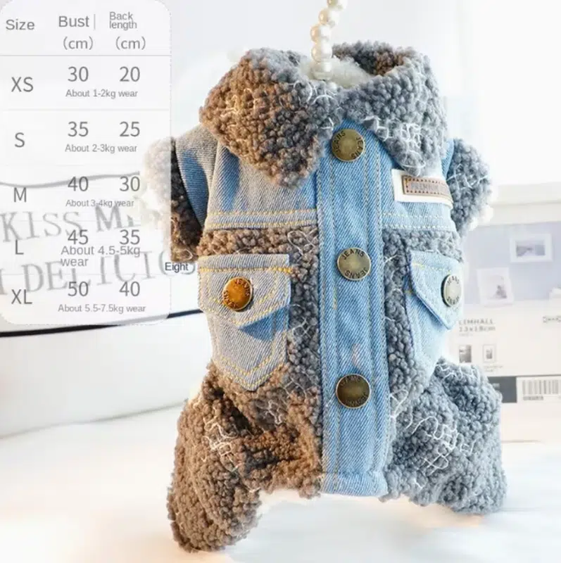 Cozy sherpa-lined denim dog jacket built for winter streets and outdoor walks. Ideal for retailers needing factory-direct wholesale, custom colors and OEM branding.