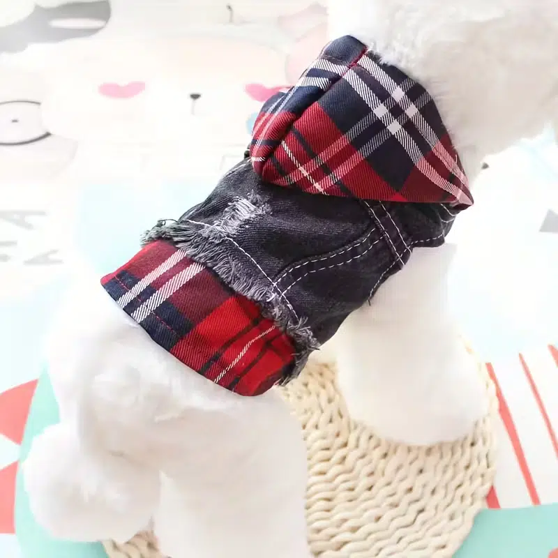 Classic plaid windbreaker with high neck and adjustable straps. Ideal for brands needing OEM colors, private-label trims and reliable factory supply for autumn and winter pet apparel.