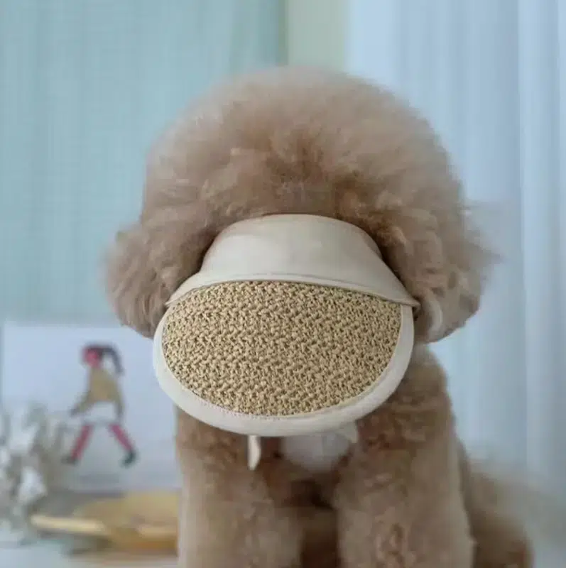 OEM custom beige pet sun hats with adjustable chin ropes & foldable polyester-straw brim. Lightweight sun protection for small-medium dogs/cats. Factory MOQ flexible, private label welcome for wholesale distributors.