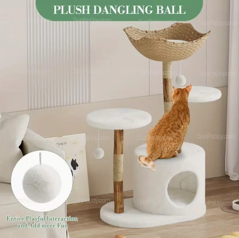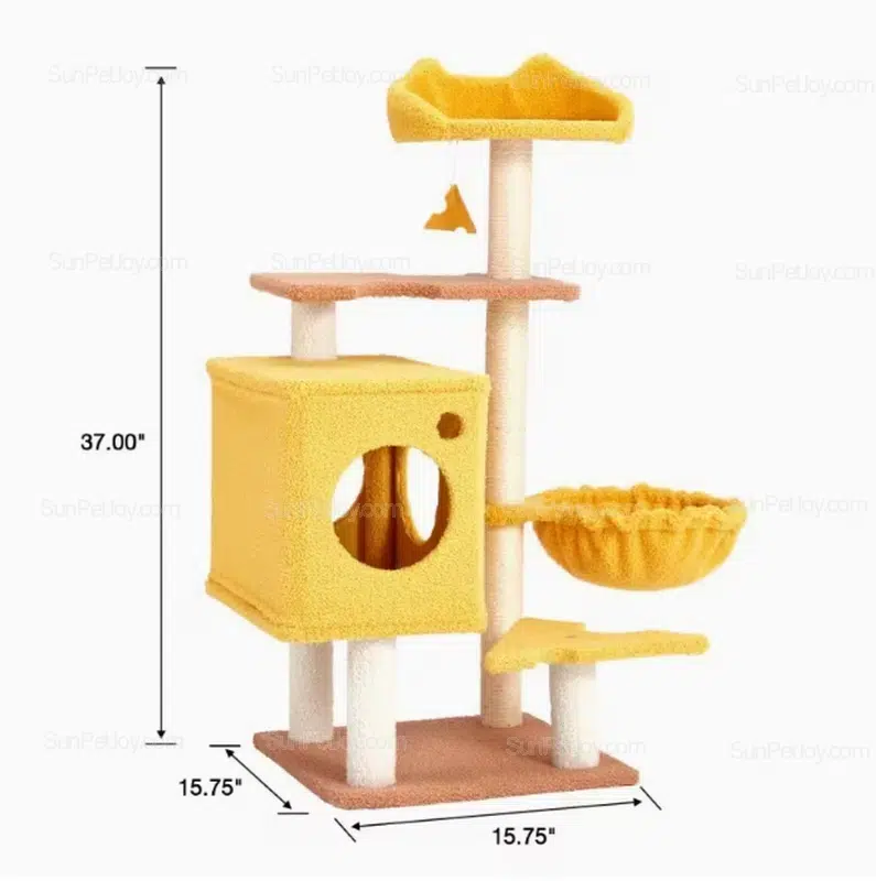 Wholesale Durable Cat Cheese Tower with Hammock Feature: 37" multi-level sisal post tower ideal for small cats. Perfect for bulk OEM/custom orders from factories.