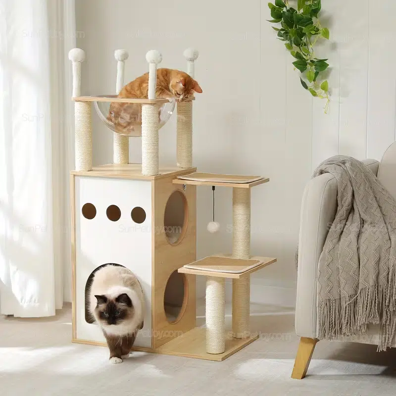 The SUNPETJOY Wholesale Wooden Cat Tower is a modern indoor cat condo built for multi-cat homes and large breeds. Made from durable wood in brown […]